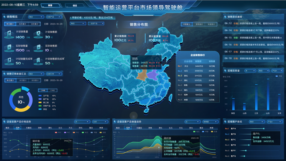 2023年6月30日,在化工集團領導和支持下,化工集團智能運營平臺供應鏈管理銷售管理模塊在試點企業蒲潔能化正式上線試運行。該模塊是化工集團智能運營平臺重要建設內容,是促進化工集團數字化轉型升級的重要一環。銷售管理模塊包括銷售計劃管理、定價管理、訂單管理、交貨管理、對賬管理、發票管理、合同管理、銷售團隊管理、商機管理、出差計劃管理、拜訪管理、工作總結、報表管…
