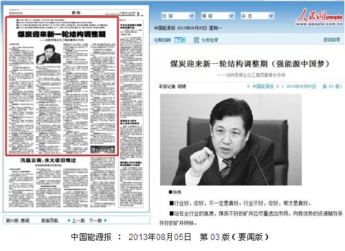 煤炭迎來新一輪結構調整期(強能源中國夢)——訪陜西煤業(yè)化工集團董事長華煒■華煒■行業(yè)好,你好,不一定是真好。行業(yè)不好,你好,那才是真好。■站在全行業(yè)的高度,煤質不好的礦井應盡量退出市場,向有優(yōu)勢的資源賦存條件好的礦井轉移。■今天,當我們面對困難的時候,再回想07年、08年關于煤化工的那場爭論,我們更加清醒:發(fā)展煤化工應慎重選擇。■近幾年,我們津津樂道國企…