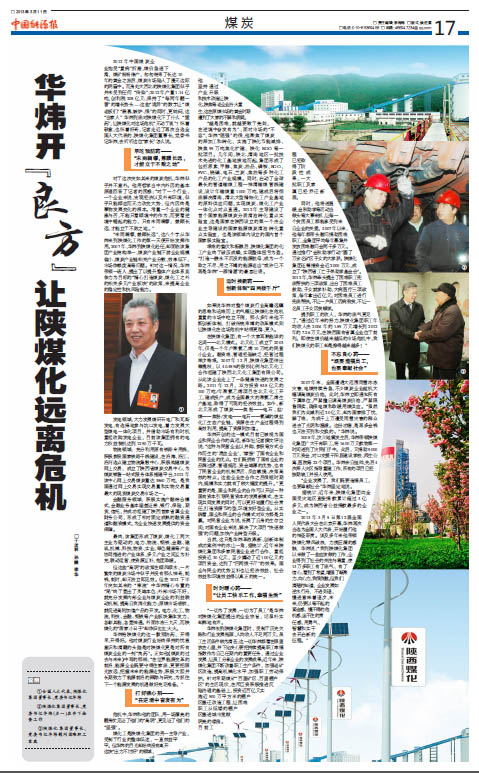 中國(guó)能源報(bào) 2013年3月11日17版華煒開(kāi)“良方”讓陜煤化遠(yuǎn)離危機(jī)于孟林 孫鵬 李華2012年的煤炭企業(yè)“生病了”,煤價(jià)急速下滑,煤礦紛紛停產(chǎn),匆匆結(jié)束了長(zhǎng)達(dá)10年的黃金之旅后,煤炭市場(chǎng)陷入了漫無(wú)邊際的陰霾中。而身處大西北的陜西煤業(yè)化工集團(tuán)似乎并未受到 “傳染”:2012年產(chǎn)量1.14億噸,實(shí)現(xiàn)銷售收入1250億元,創(chuàng)利稅208億元,持續(xù)保持了“每?jī)赡攴环钡脑鲩L(zhǎng)勢(shì)頭……這些“詭…