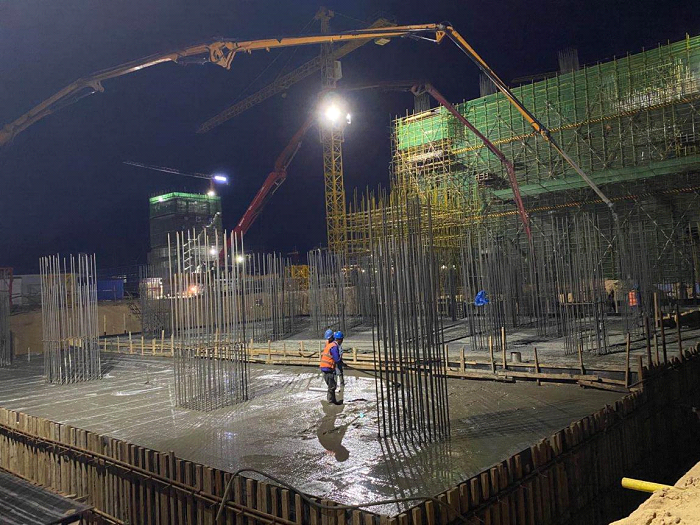 由勝幫科技股份有限公司EPC總承包、中化三建公司施工的陜煤集團榆林化學有限責任公司1500萬噸/年煤炭分質清潔高效轉化示范項目粉煤熱解裝置兩器框架筏板基礎經過36小時的艱苦奮戰順利完成了全部混凝土澆筑工作。