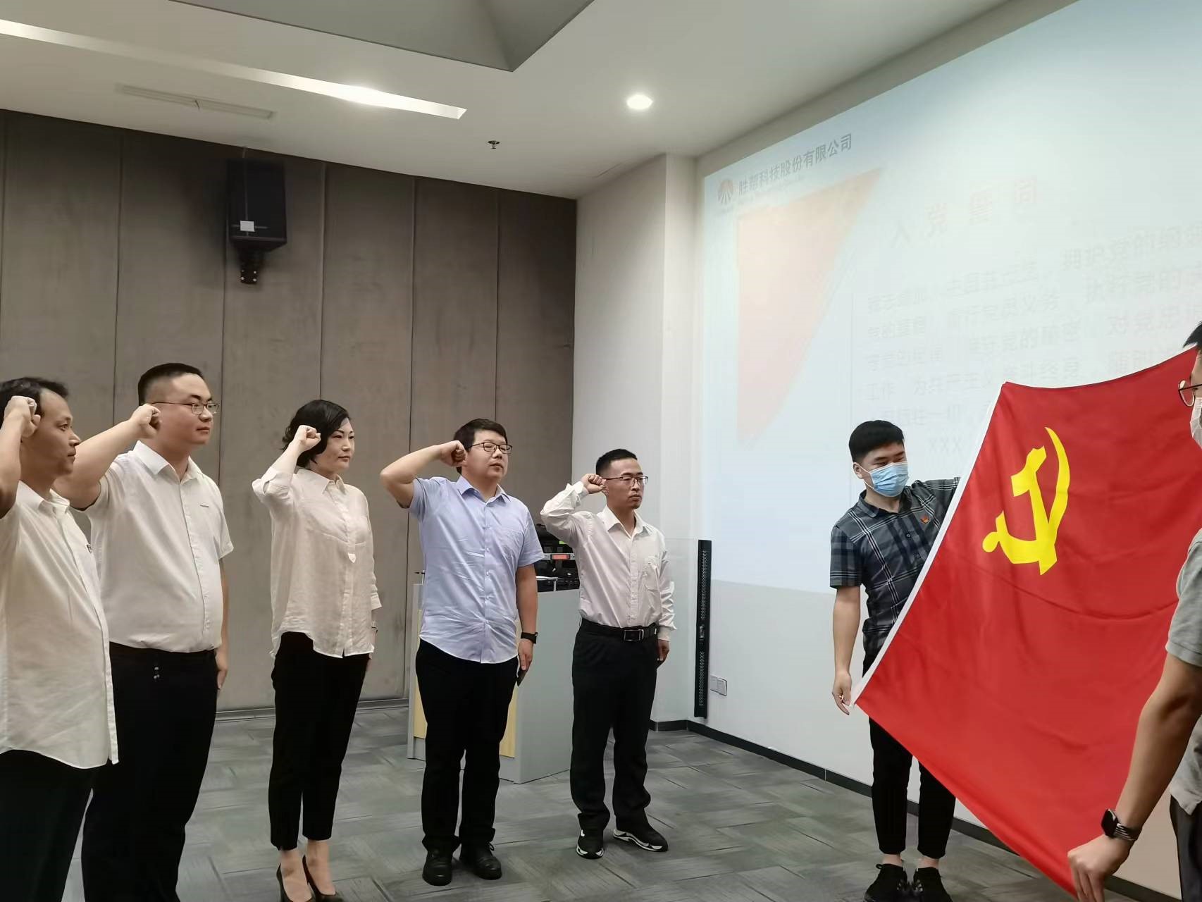 參加此次活動的有公司領導、黨員代表、預備黨員、入黨積極分子和發展對象,活動以莊嚴的國歌拉開序幕。