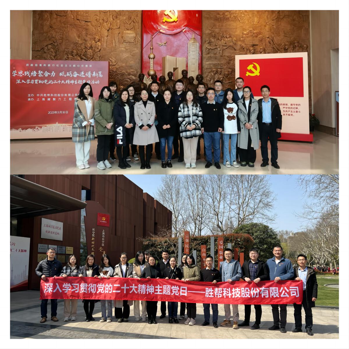 為深入學(xué)習(xí)貫徹黨的二十大精神,切實(shí)把黨員干部的思想和行動(dòng)統(tǒng)一到黨的二十大精神上來(lái),提高政治站位,砥礪奮斗初心,推進(jìn)集團(tuán)公司高質(zhì)量發(fā)展,3月16日,勝幫科技股份有限公司第一黨支部、第二黨支部、第三黨支部赴上海市凝聚力工程博物館開(kāi)展“學(xué)思踐悟聚合力,砥礪奮進(jìn)譜新篇——深入學(xué)習(xí)貫徹黨的二十大精神”聯(lián)合主題黨日活動(dòng)。各支部書記及預(yù)備黨員、發(fā)展對(duì)象、入黨積極分子代表共20余人參加活動(dòng)。