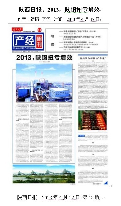 陜西日?qǐng)?bào):2013,陜鋼扭虧增效