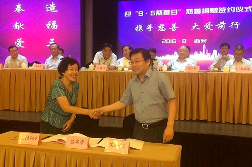 8月26日下午,陜西省慈善協(xié)會(huì)舉行迎“中華慈善日”慈善捐贈(zèng)集中簽約儀式,陜西省副省長(zhǎng)姜鋒、省慈善協(xié)會(huì)終身名譽(yù)會(huì)長(zhǎng)徐山林,名譽(yù)會(huì)長(zhǎng)陸棟,省慈善協(xié)會(huì)會(huì)長(zhǎng)劉維隆、省國(guó)資委主任胡保存、省民政廳廳長(zhǎng)趙正才、省委宣傳部常務(wù)副部長(zhǎng)劉斌,陜煤化集團(tuán)董事長(zhǎng)、黨委書記楊照乾,常務(wù)副總經(jīng)理尤西蒂,總經(jīng)理助理、工會(huì)會(huì)負(fù)責(zé)人李向東,以及其他捐贈(zèng)單位代表出席會(huì)議。